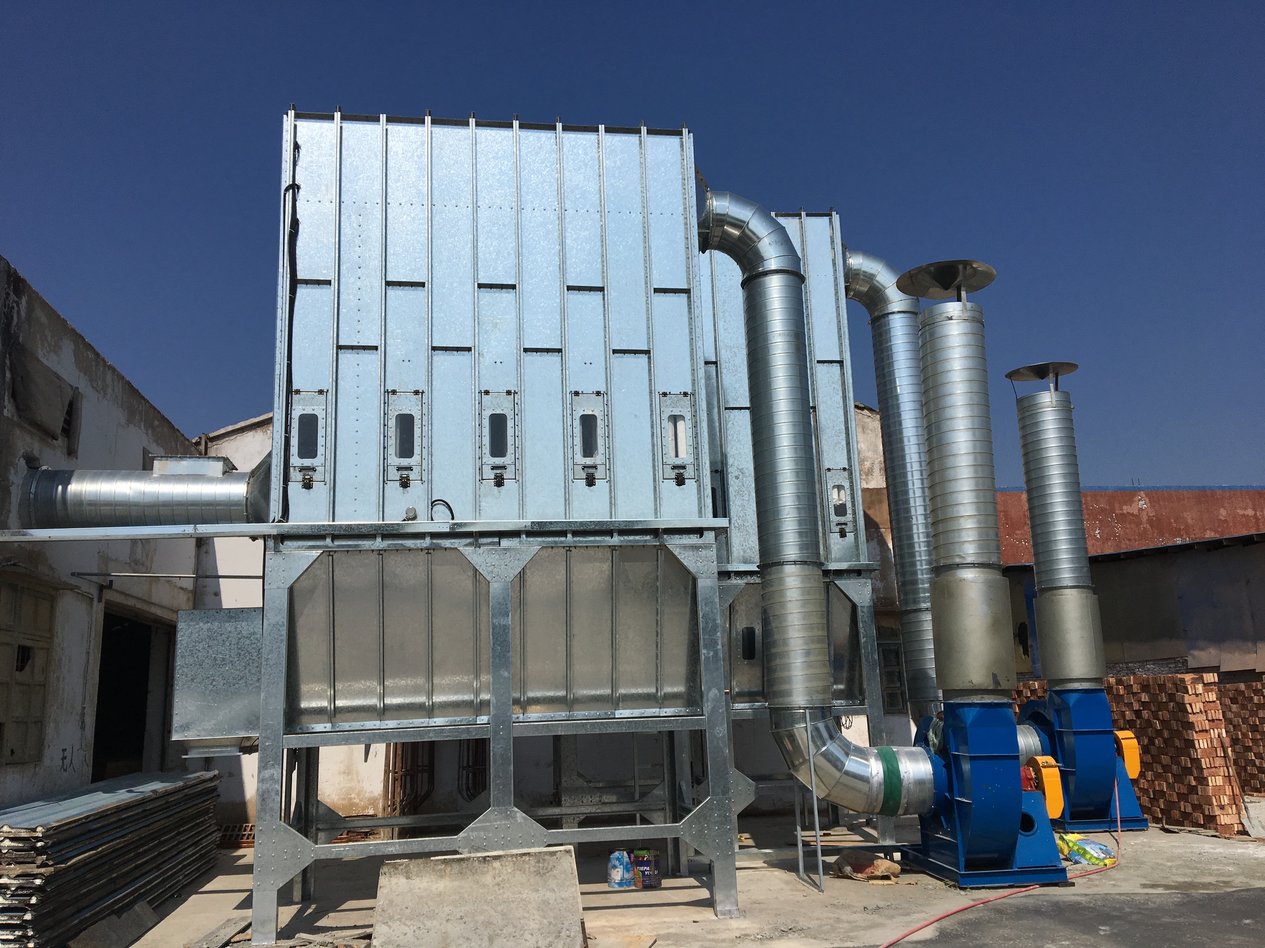 8、本除塵器可室外露天設置,不用建造除塵器間;同時,除塵器采用標準模塊組合箱體式結構,可根據用戶需要方便地增加尺寸、擴大處理風量、變換配套風機,適合企業(yè)不斷發(fā)展變化的需要。如果在北方還可(經布袋除塵后的空氣可返回車間,做到排塵不排熱,又可減少車間空氣濕度變化。管道設有二次濾塵裝置,并設有轉換閥,滿足夏季和冬季不同要求。)