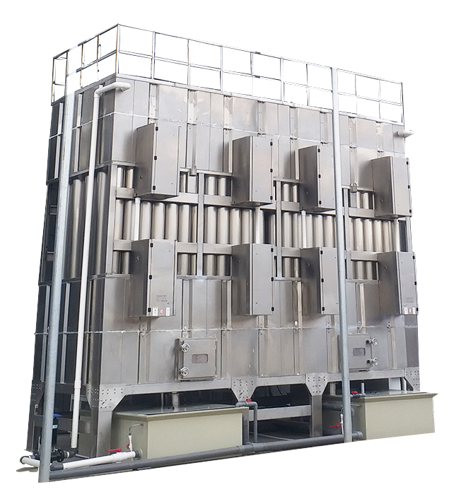 濕式靜電除塵(霧)器WESP是高效的燃煤電廠、鋼鐵廠、小型鍋爐、垃圾焚燒、水泥建材、 化工等煙氣深度凈化裝置,能有效的治理PM2.5顆粒物(PM0.5. PM10 )、S03酸霧、石膏雨、氨氣溶膠、重金屬汞、二噁英等,減小煙囪尾羽,解決石膏雨、大白煙問題、粉塵等達標并超凈超低排放。