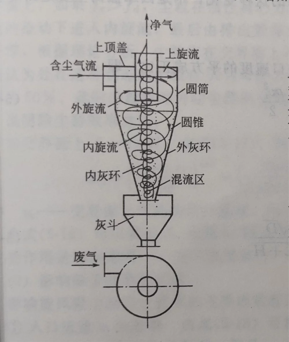 旋風(fēng)除塵器由排風(fēng)管、圓筒體、圓錐體、進(jìn)風(fēng)口、卸料閥、灰斗等部分組成。