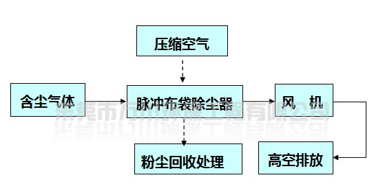 為了在生產(chǎn)過(guò)程中產(chǎn)生出來(lái)的粉塵能及時(shí)清理,讓員工能在良好的環(huán)境下工作,對(duì)周?chē)h(huán)境不會(huì)產(chǎn)生影響,因此,我們技術(shù)人員決定為榮科公司重新設(shè)計(jì)一套除塵系統(tǒng)。根據(jù)榮科公司的實(shí)際情況和以往的案例經(jīng)驗(yàn),我們技術(shù)人員依據(jù)國(guó)家及地方關(guān)于環(huán)保的法律和法規(guī)、工業(yè)企業(yè)設(shè)計(jì)衛(wèi)生標(biāo)準(zhǔn)(TJ36-79)、《廣東省大氣污染物排放標(biāo)準(zhǔn)》(DB44/27-2001)、《三廢治理工程技術(shù)手冊(cè)》廢氣卷,經(jīng)過(guò)對(duì)廢氣污染物和現(xiàn)有的處理技術(shù)的綜合分析,認(rèn)為該廠所產(chǎn)生的粉塵適合采用干式除塵法,所以我們?yōu)闃s科公司設(shè)計(jì)了一套風(fēng)量為35000m3/h脈沖布袋除塵器。