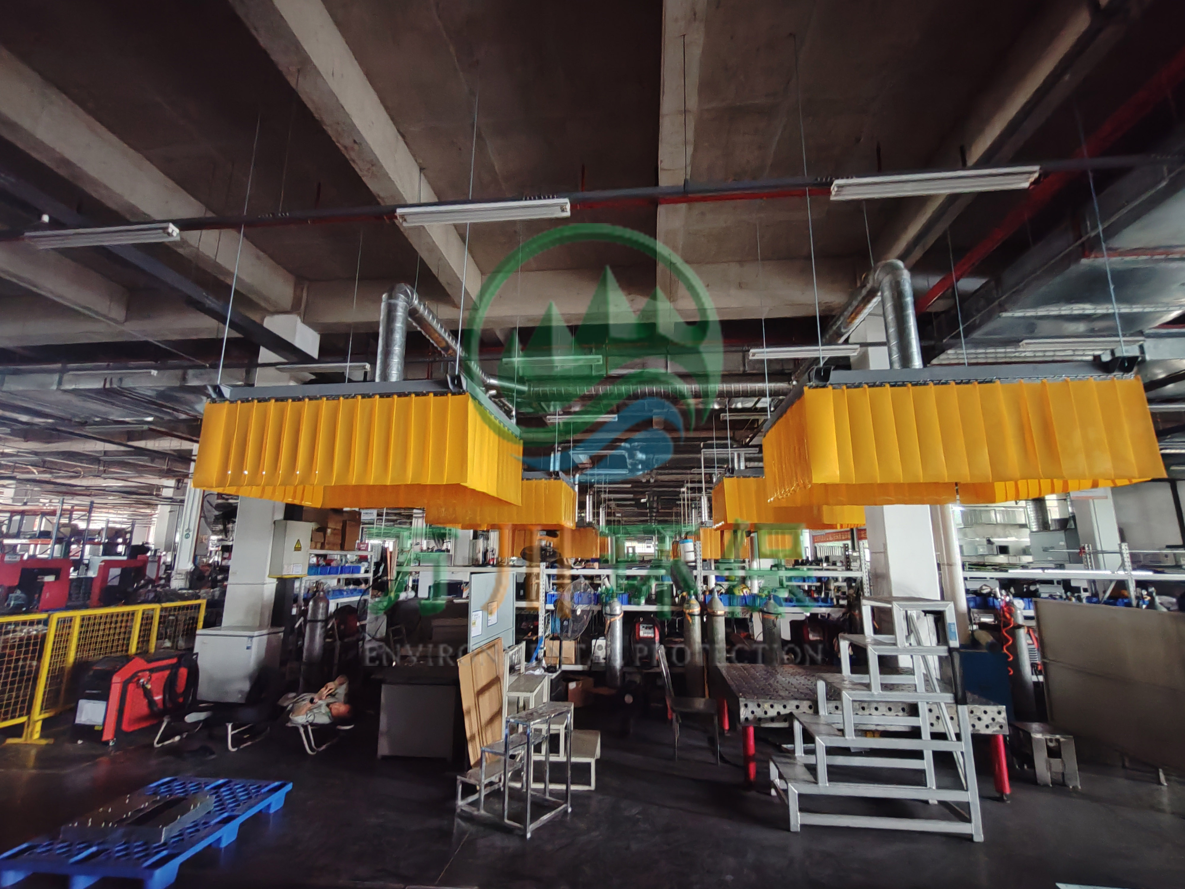 工程師根據(jù)現(xiàn)場(chǎng)焊接煙塵性質(zhì)、粒徑、現(xiàn)場(chǎng)工況等因素考量,故采用脈沖濾筒除塵器作為處理設(shè)備