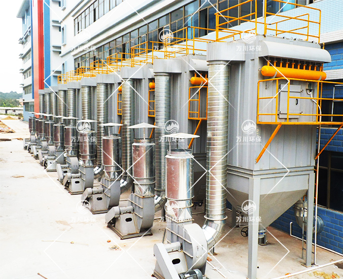 因生產(chǎn)打磨工藝品時會產(chǎn)生大量的粉塵氣體,秉承對員工生產(chǎn)環(huán)境負(fù)責(zé)的態(tài)度,美景實(shí)業(yè)在對比多家廢氣處理廠家后,最終決定采用萬川環(huán)保廢氣處理設(shè)備--脈沖布袋除塵器。