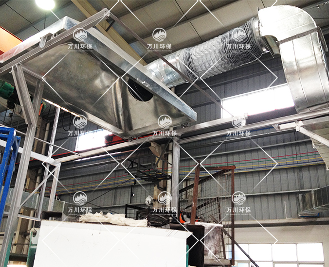 產(chǎn)生的廢氣還有煙塵、油性、有溫度,因此采用噴淋的方式處理。
